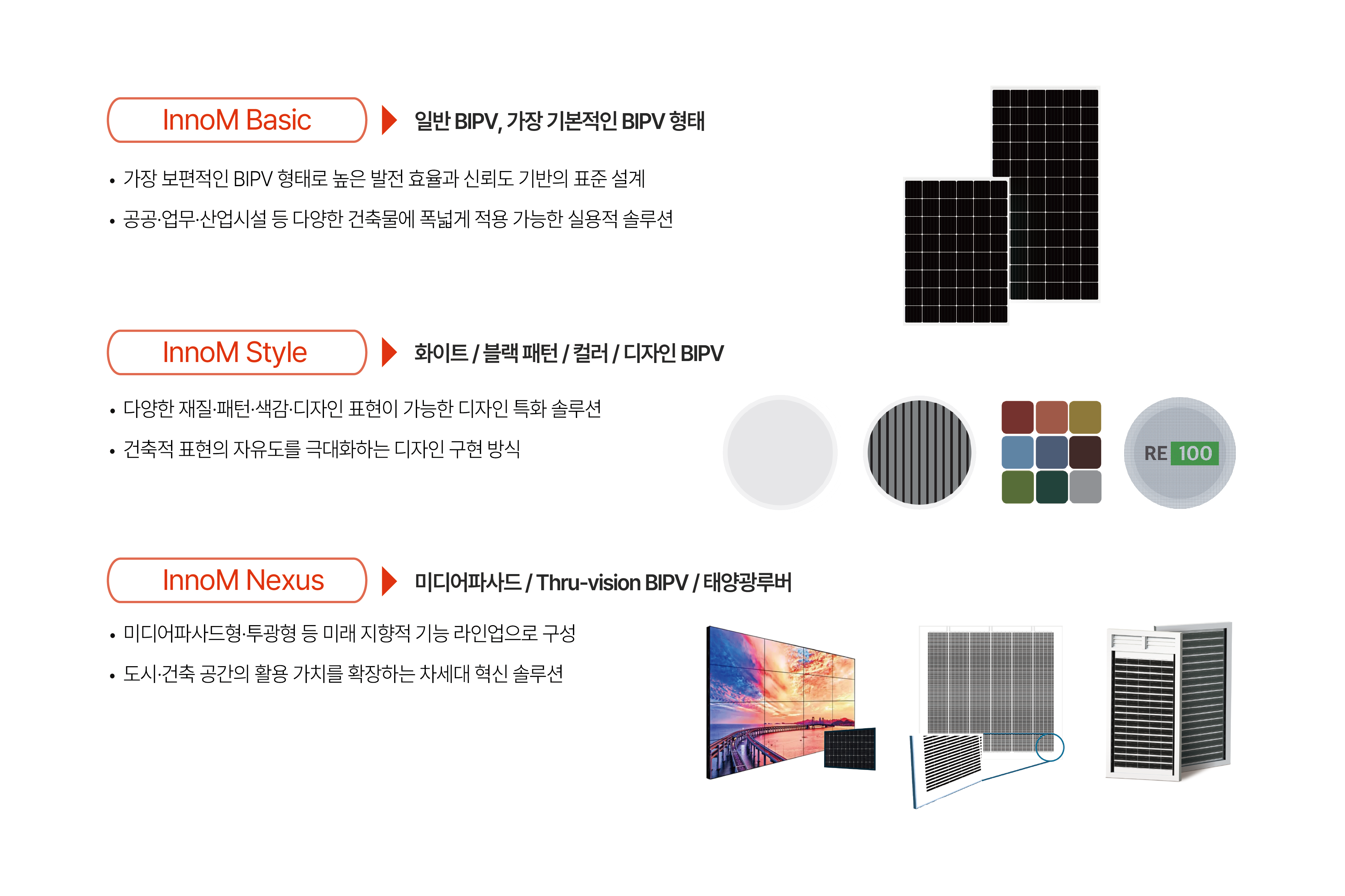 이노엠은 건축 외장재를 단순한 마감재를 넘어 에너지를 생산하는 디자인 요소로 확장합니다.